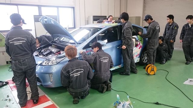 で、2年生は教科書も買ってあるし、丸2日かけてオリエンテーションをやるほどネタもないので、実習車や実習機材の入れ替えをして清掃です。来週から1・2年生ともに実習が始まりますので。