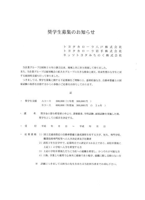 2017年06月15日 塚原企業グループ 奨学生募集のお知らせ
