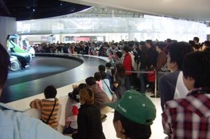 東京モーターショー会場に到着しました。メーカーブースは混んではいますが見れない事は有りません。写真は厳しいですけど。
