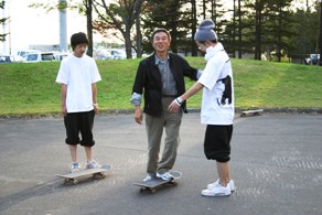 普段は学生たちに教える立場の我々教員ですが、学生に教えてもらっている様子です。お二人とも果敢に挑戦しておりました。心なしかM先生には優しく教えているような気がしましたが・・・。