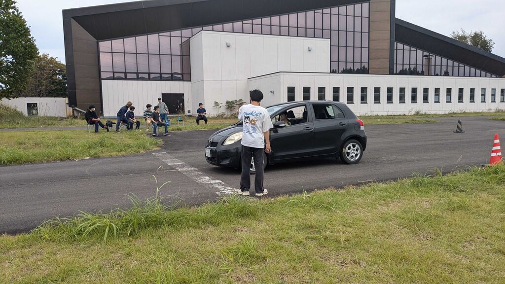今日は2年生がオートテストを実施しました。一分程度のコースを安全で正確に走行します。パイロンタッチや脱輪はタイムに加算され、一人3回走行で一番良いタイムを採用し、参加者の中で一番少ないタイムが優勝となります。それにしても、本当に丁度良い天気で良かったですね。何よりゲストで同乗した高校生の謎のパワーが一番すごかったです。